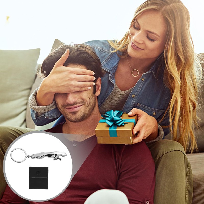 YSDYY 1 Leopard-Shaped Keychain And 1 Velvet Bag, Metal Keychain, Gift Keychain, Creative Car Keychain