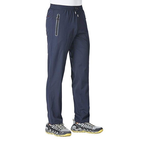 YSENTO Men's Joggers Pants Quick Dry Stretch Athletic Track Pants Zipper Pockets Dark Blue Size L