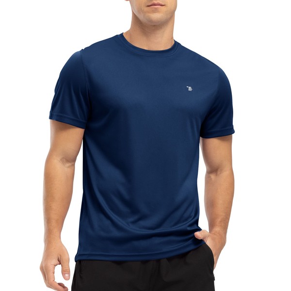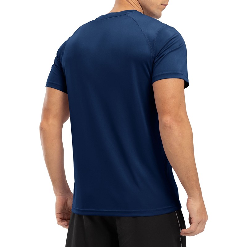 YSENTO Mens Rash Guards UV Swim Tops Rash Vest Quick Dry UPF 50+ Short Sleeve Running Sports Gym Tops(Navy,L)