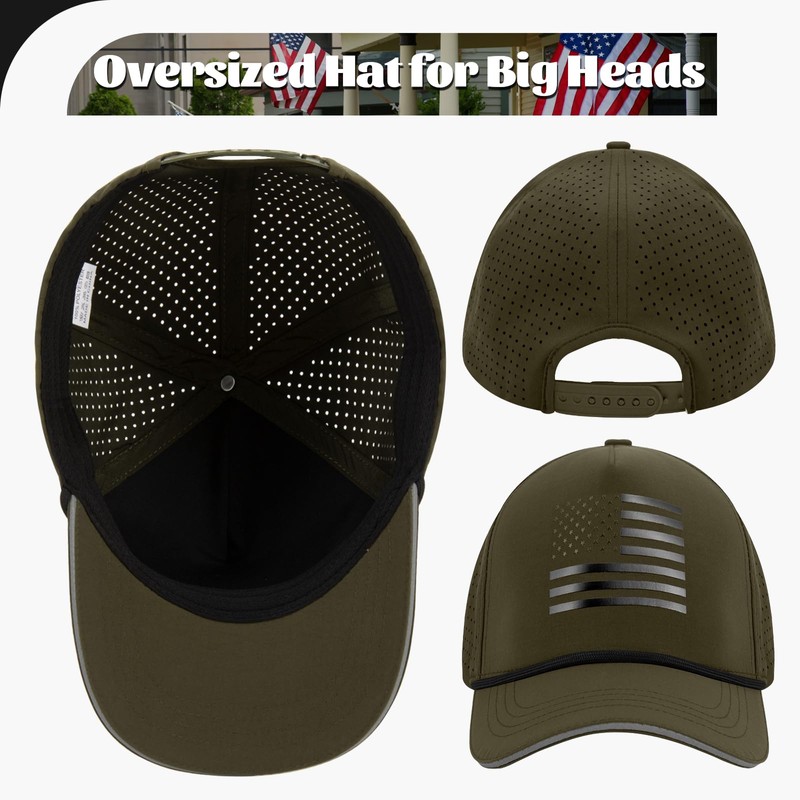 Yseoul Oversize XL XXL American Flag Trucker Hat - USA Baseball Cap - Large Breathable Mesh Snapback Hats for Men Big Heads Olive