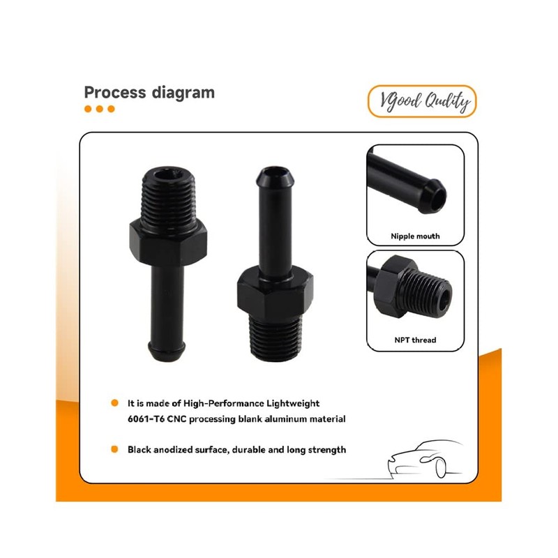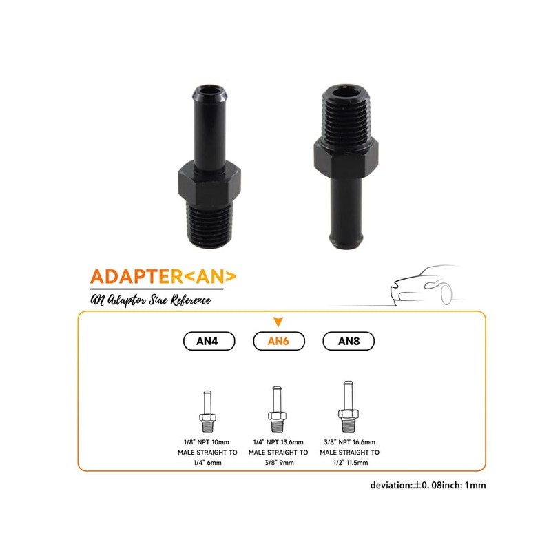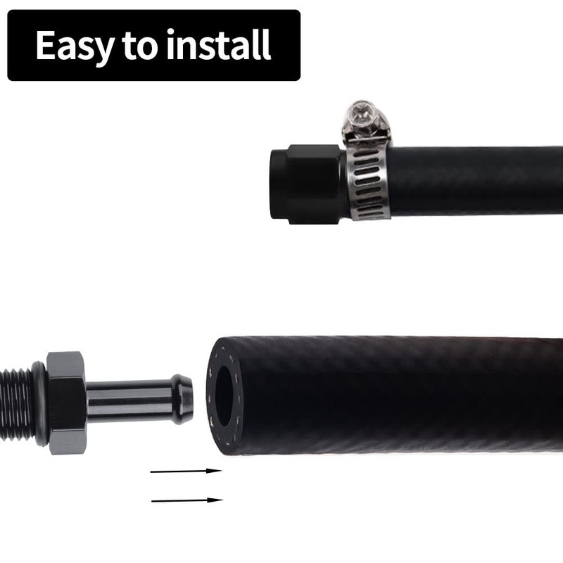 - Easy to Install: Just push the barb end into the hose. It is necessary to use clamps for tighter sealing. The male thread end can be tightened with an AN adjustable wrench.