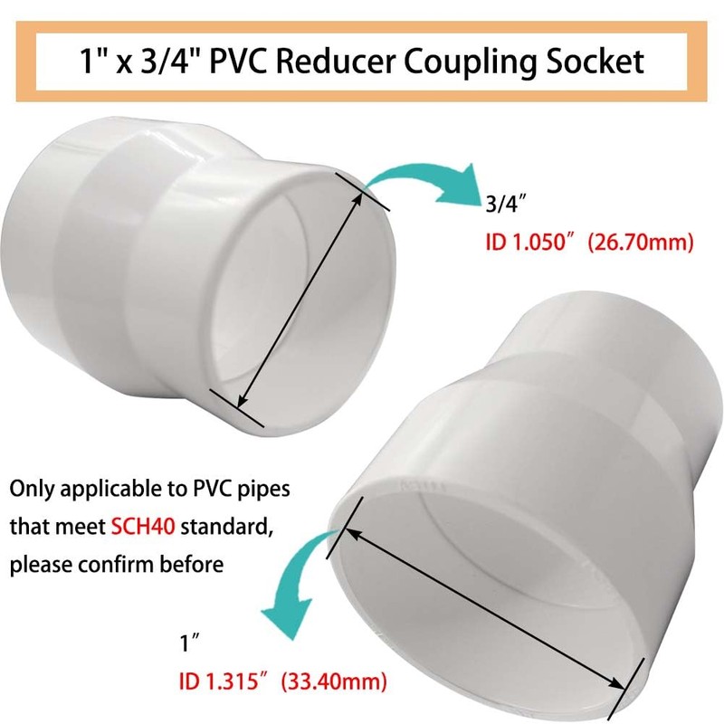 - 【PVC Reducer Adapter Socket x Socket】This PVC reducer adapter has sockets at both ends used to connect and disconnect two straight pipe sections with different inner diameter of 1" to 3/4” , ideal for center connections