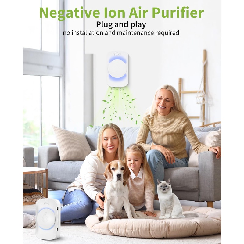 • 【Convenient Plug in Air Ionizers for Home】The air purifiers comes with compact and Unique design,making the wall plug air purifier simple for anyone to operate.The ionic air purifier is Mini (1.3*2.32*3.94inch), light weight(3oz). Take it with you on the go, plug and play, save space and replace bulky, expensive air purifiers.Just plug ySky air ionizers into any standard outlet will automatically start releasing negative ions to purify the air