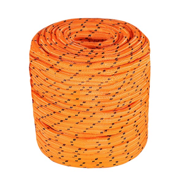 YSMN 1/2 in 200 FT Orange Double Braided Rope Polyester Rope Heavy Duty Rope for Tree Work Suitable for Outdoor Use