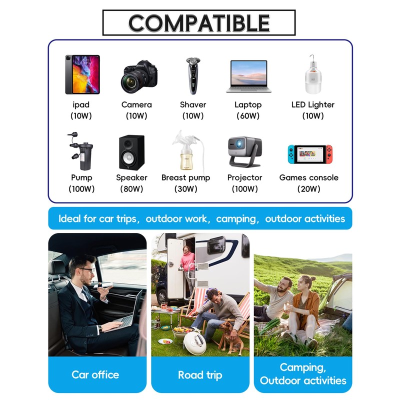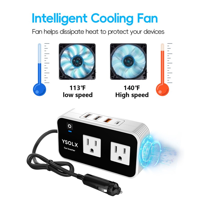 YSOLX 200W Car Power Inverter, DC 12V to 110V AC Inverter, Car Charɡer Adapter with 20W USB-C/USB-QC(18W)/4.8A Dual USB/Dual AC Outlet, Car Pluɡ Adapter Outlet for Laptop/Road Trip