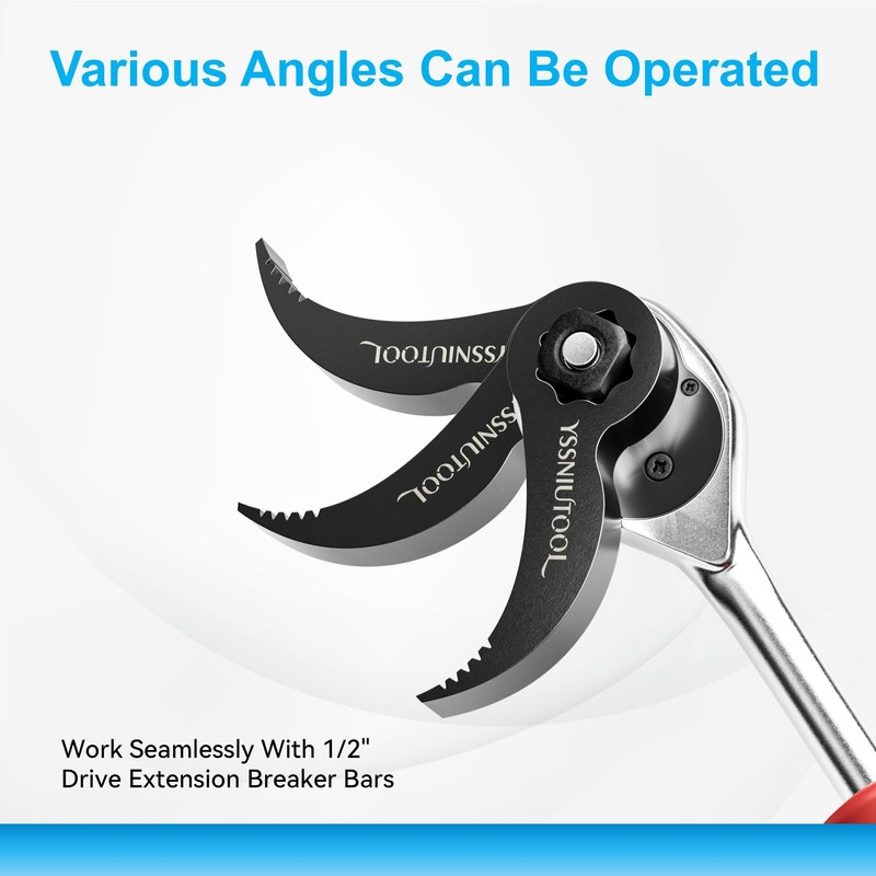 YSSNIUTOOL Pry Bar Wrench Adaptor Head, Ratchet Pry Bar Attachment 1/2" D 8pt (Square) Profile, Crowbar Adapter Head Tool, Adjustable Angle Head Pry Bar Fits1/2 Ratchet for Tight Spaces