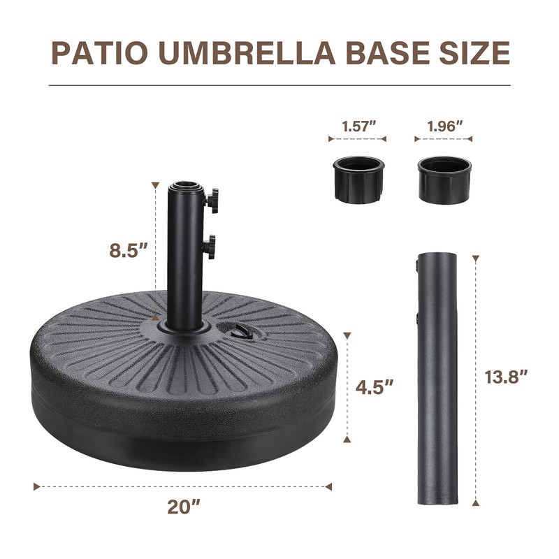 - High quality: The umbrella features powder coated poles and 8 ribs provide stronger support, sturdy, and anti-rust. The stand is made of durable HDPE material, galvanized design makes the pipe not be corroded easily