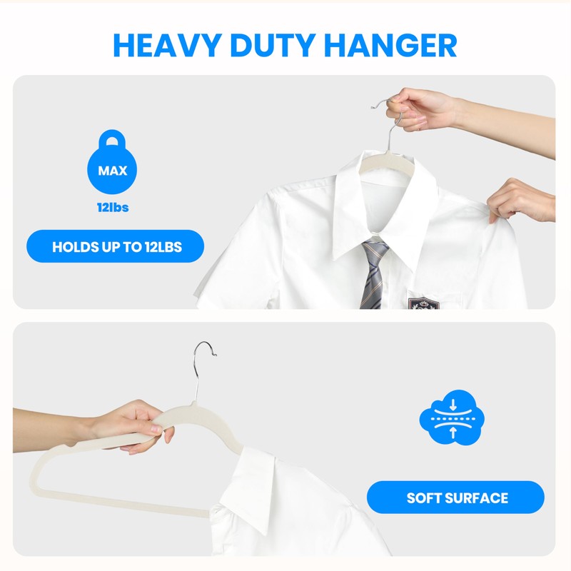 - Durable & Sturdy: These black velvet hangers 50 pack are constructed with strong and durable ABS plastic. Each clothes hanger can hold up to 12 lb (5.5 kg), making them ideal for hanging your heavy jackets, sweaters, and other clothing items with ease.