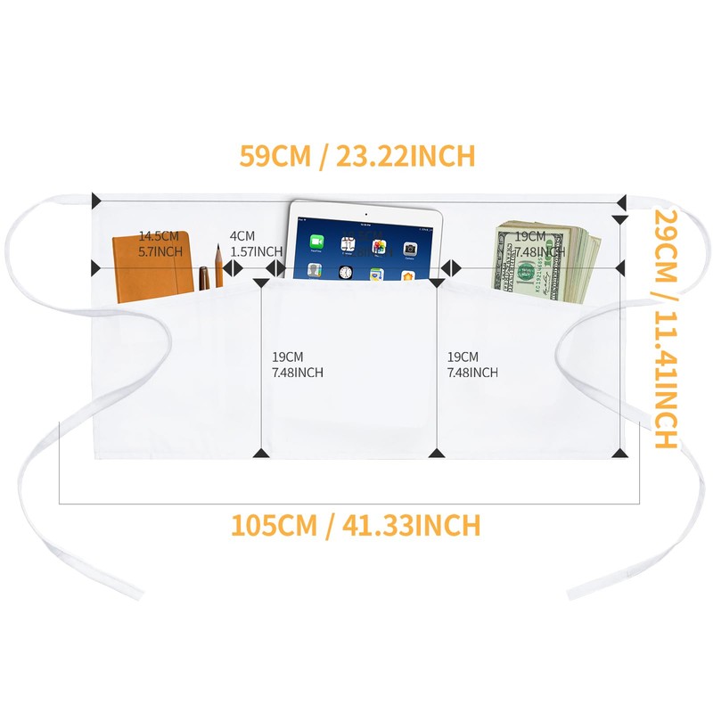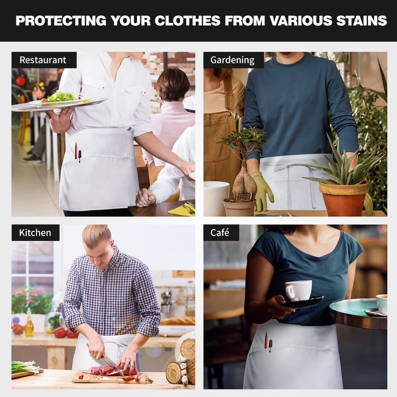 ysxkqz 3 Pack Server Apron Waitress Aprons with 3 Pockets - Waist Aprons for Restaurant Women Men White
