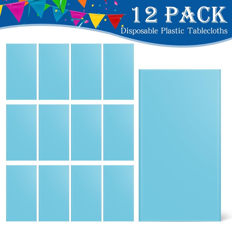 YSYJ 12 Pack Light Blue 54 x 108 Inch Disposable Plastic Tablecloths Rectangular Table Cloth Plastic Table Cover for Parties