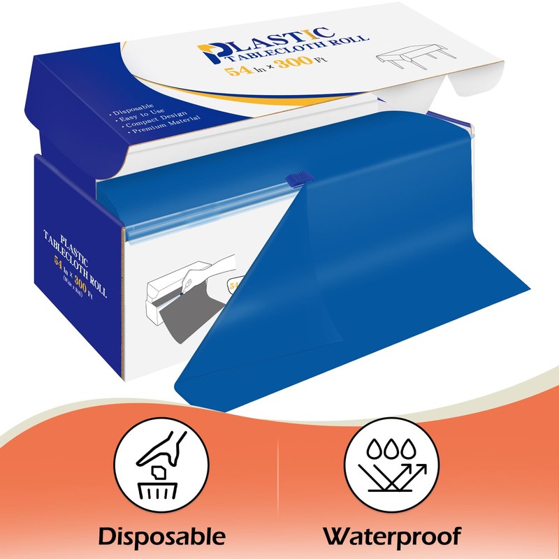 • Disposable Table Cloth Roll: These plastic tablecloths are made of premium material. 54 inch x 300 feet table covers meet your party needs. The box is designed for easy storage.
