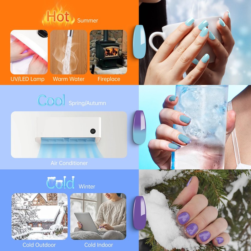 YTD Likomey Color Changing Gel Nail Polish,15ml Mockingbird Egg Blue To Purple Mood Temperature Change Colors,Fall Winter Thermal Ombre UV Manicure Pastel UV Nail Gel Varnish,WB343