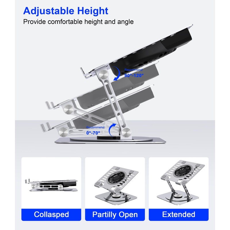 - 360 ° Rotation: The desktop laptop stand is connected to the base with dual axes for flexible and stable 360 ° rotation.Enables you to rotate your laptop to any angle during a meeting or communication, perfect for sharing content with others