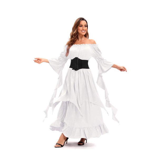 YTWS Pirate Costume Women Renaissance Viking Victorian Goth Elf Fairycore Dresses for Party Cosplay(White,S/M)