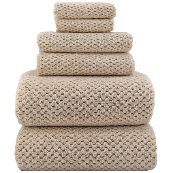 YTYC Towels,39x78 Inch Oversized Bath Sheets Towels for Adults Luxury Bath Towels Extra Large Sets for Bathroom Super Soft Highly Absorbent Microfiber Shower Towels 80% Polyester (Beige,6 Piece)