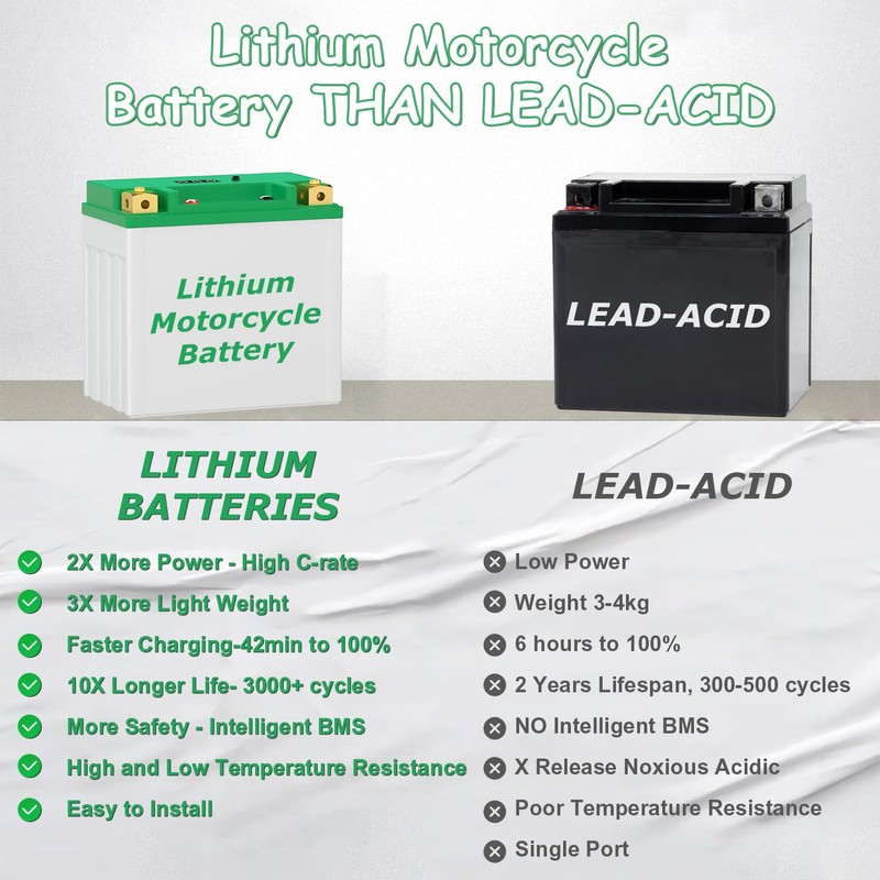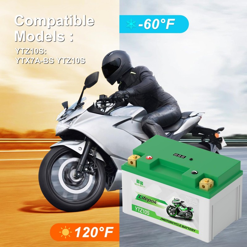 YTZ10S Lithium LiFePO4 Motorcycle Battery, 12V 5Ah, 360-400CCA, Built in BMS,...