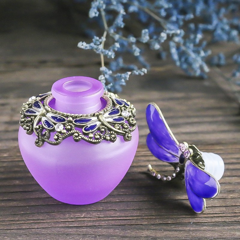 YU FENG 40ml Fancy Purple Gragonfly Empty Refillable Glass Perfume Bottle,Retro Frosted Butterfly Lid Perfume Bottle