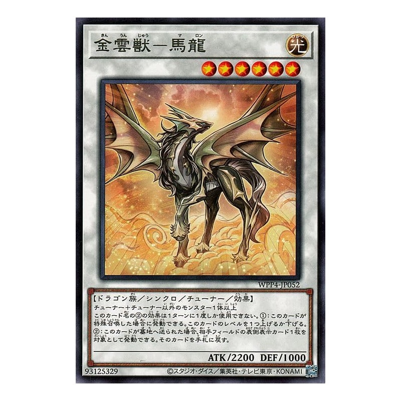 - ★Yu-Gi-Oh! OCG Duel Monsters "WORLD PREMIERE PACK 2023" (WPP4) Recorded. ■Card Name: Golden Cloud Beast - Horryagon ■Yu-Gi-Oh! TCG Card Name: Golden Cloud Beast - Malong [Synchro Effect Monster] Rare 6 Star / Light / Dragon / Attack: 2200 / Defend: 1000 /