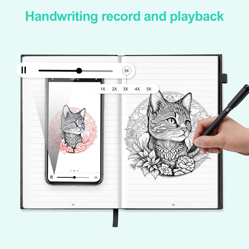- Playback and Sharing: The Yuan smart digital pen supports saving and playing back your notes in video format. The video playback function lets you review your creative and learning process, as well as relive precious memories. You can also share your notes or creations via email or social media platforms like Facebook, Instagram, Twitter, and more, in formats such as PDF or image files.