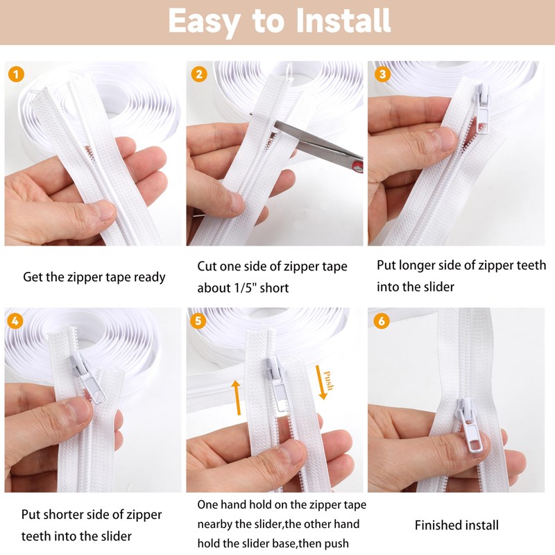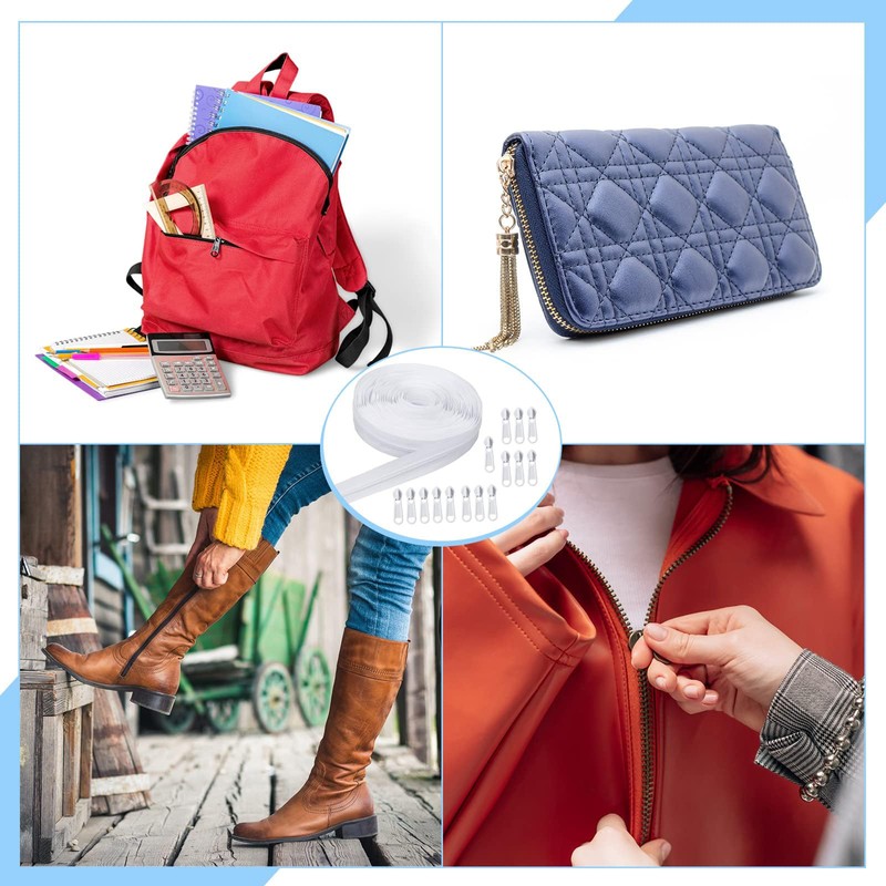 You will receive 2 pieces resin #5 open zipper pulls in white and 15 pieces replacement zipper pulls. You can cut it to any desired length, attach to bags, clothes, pet supplies that need to be zipped and also used to repair and replace defective zippers so they can be reattached