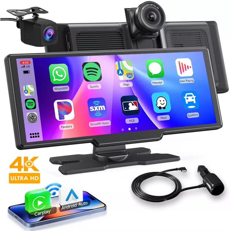 YuanTing 10.26" 4K Touch Screen Wireless Apple Carplay Android Auto Portable Car Stereo