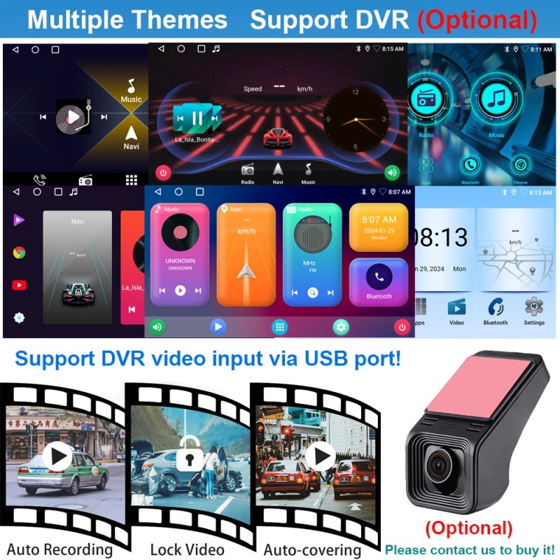 9. Rear dual USB port input: Support rear cable USB input, can play music/movie Or wire CarPlay Android Auto