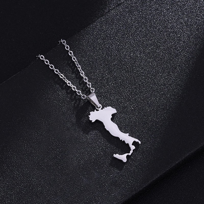 YUANYIRAN Italy Map Pendant Necklace - Unisex Couple Necklace Jewelry Ethnic Charm Flag Pendant Patriotic Map Hip Hop Jewelry Fashion Personality Memorial Gift