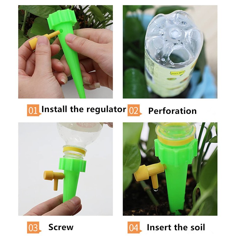 - 【Easy to Use】 Simple operation and easy installation. You only need to prepare a standard bottle with a 1 inch/25 mm diameter opening, drill a hole at the bottom of the bottle, and place a regulating valve to adjust the flow rate. Insert the soil to start watering.