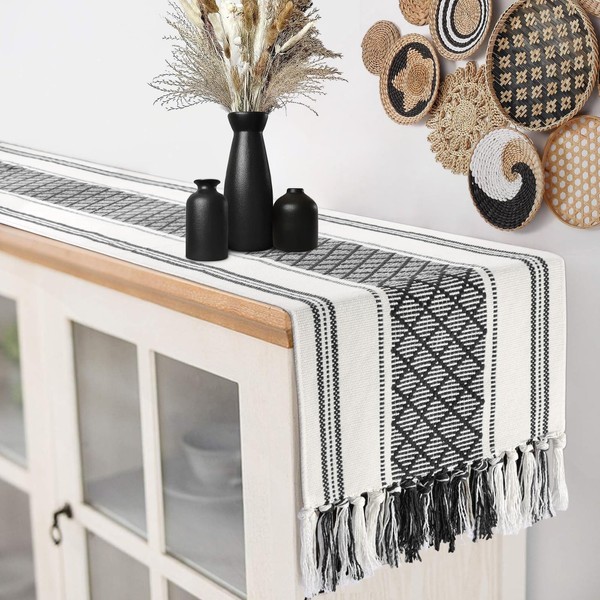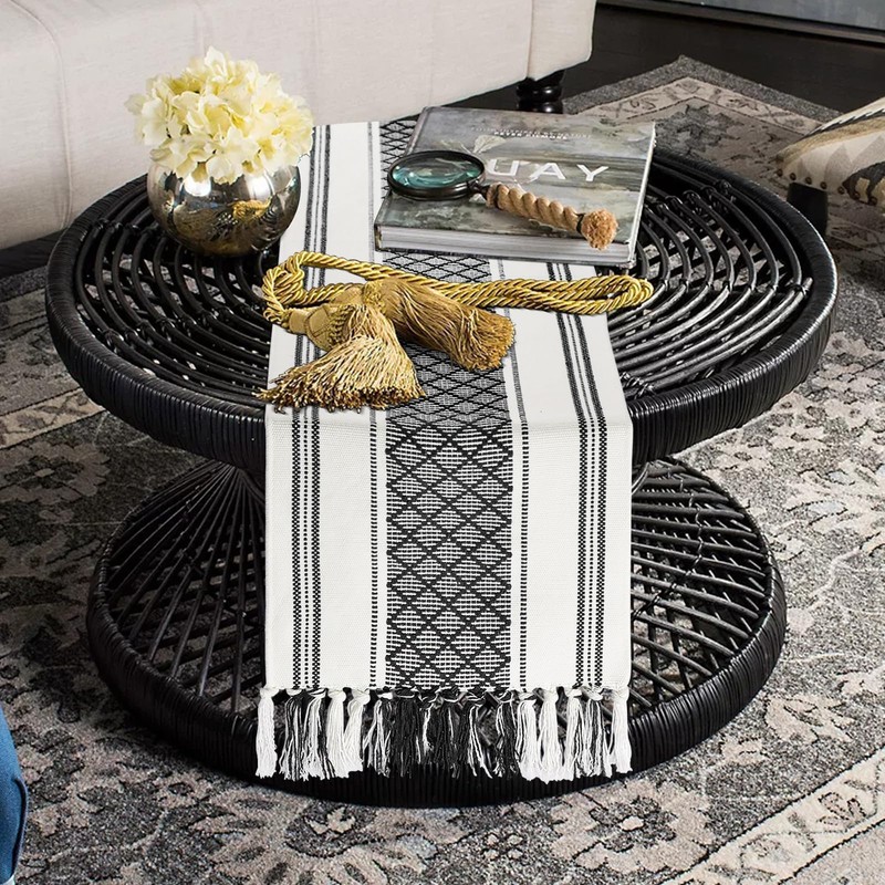 - Runner for Table Decor But Not Only: The boho fringe farmhouse table runner is adapted for the long dining table,tv cabinet,coffee table runner,dresser runner,end table,fireplace,picnic table,piano,office,conference table runner,study room desk,bed,even as for travel camping outdoor table linens cloth. While adding fun to life, you will also be undoubtedly earn high praise and appreciation from your families and friends.