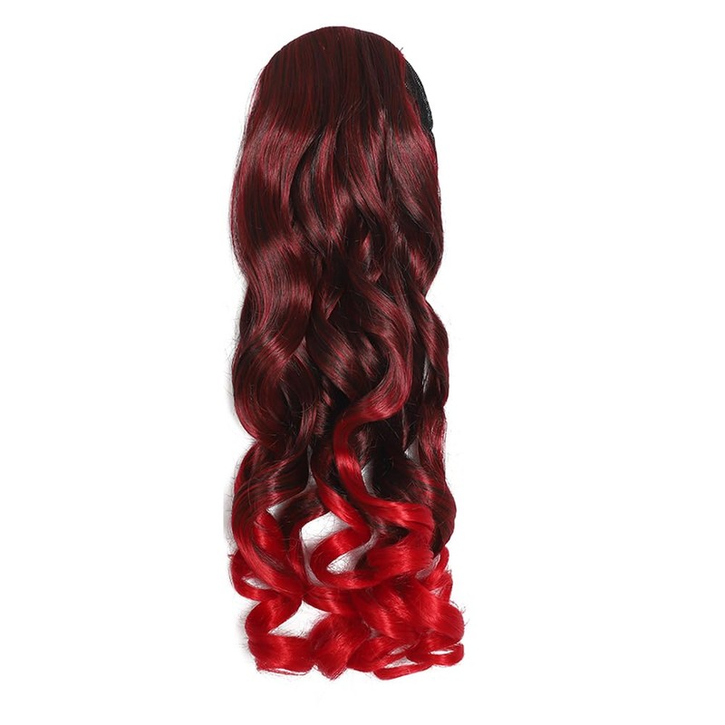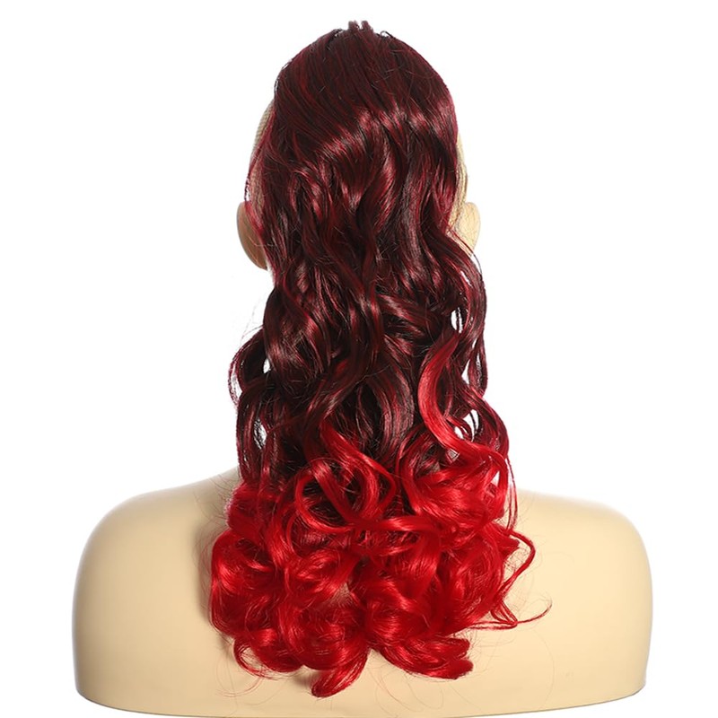 YUDAOHAIR 14 Inch Ponytail Extension Freedom Curl Clip In Curly Wavy Ponytail Extensions Drawstring Short Ponytail Hairpiece Ombre Black to Red Synthetic Hair Pieces for Women