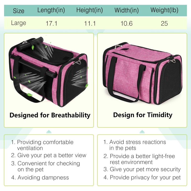 - AIRLINE APPROVED CARRIER - With airline-approved design, you can take your pet to go to everywhere. This pet carrier provides two connecting loop handles for balanced carrying as a dual seat belt or luggage strap to secure transport.