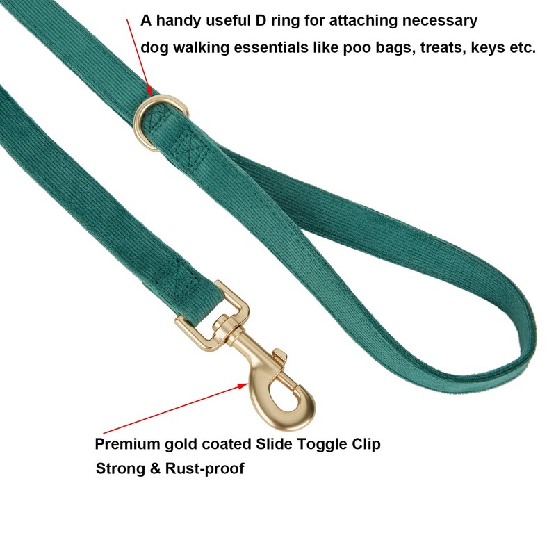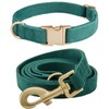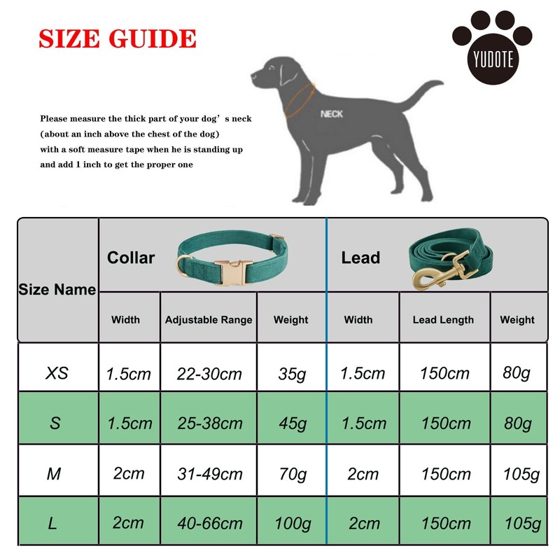 YUDOTE Dog Collar and Lead Set Large,Soft Non-irritant Corduroy Collar Leash Matching Combo for Daily Walking,Green