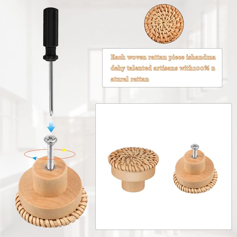 - Rattan Cabinet Knob Set - You will get 12 rattan drawer knobs and 12 screws, which fully cover your basic needs.