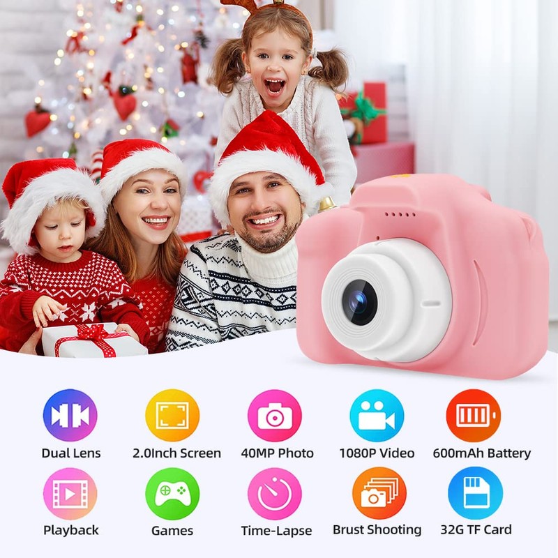 - 【New upgraded kids toy camera】 Kids digital camera with 1080P HD, 2.0 inch IPS screen with autofocus and 8x digital zoom. Children can take photos with frames, leave some hilarious photos with family or friends. Catch the wonderful joy moment for boys or girls.