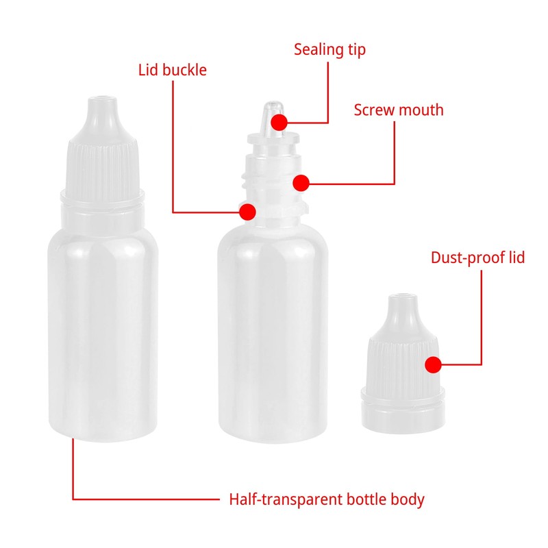 • Made from high-quality plastic material, every plastic dropper bottle is soft, squeezable. Liquids can be dispensed easily with gentle pressure, while the sturdy cap keeps contents secure.