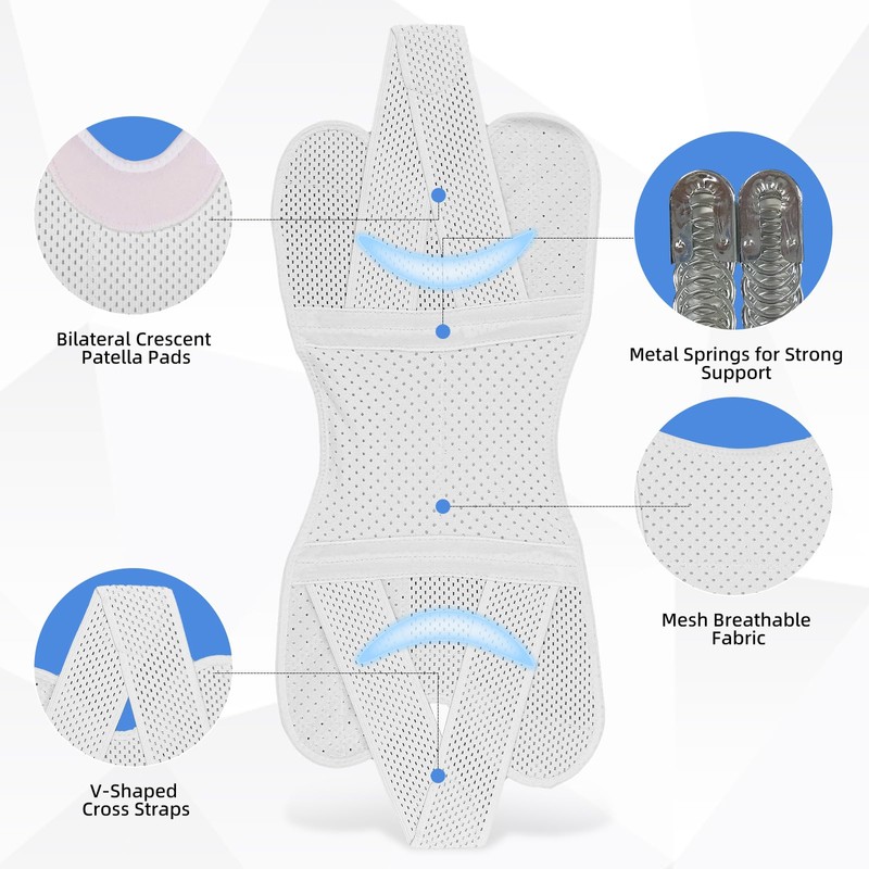- Enhanced Stability: With four built-in springs on each side, our knee brace offers a powerful support system that is both flexible and resilient, ensuring optimal stability and preventing excessive movement.