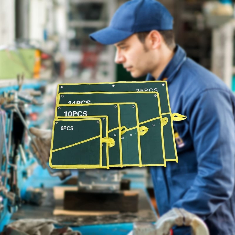 • Portability: The portable design of wrench bag roll makes it easy to carry around, whether you're working on a job site or tackling a project at home. You can simply roll up the tool roll and take it with you wherever you go, ensuring that your tools are always at hand.