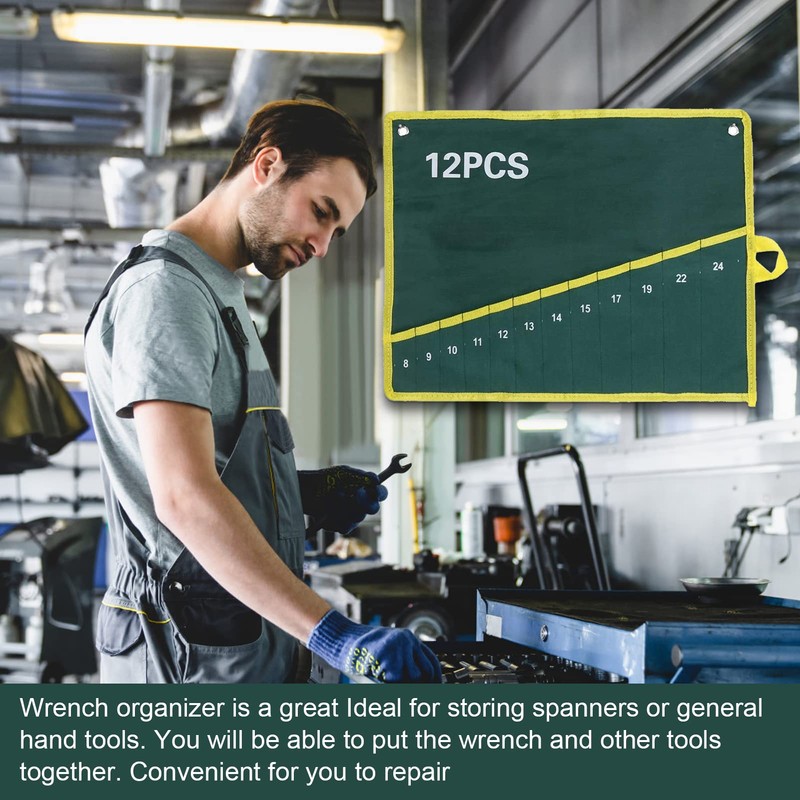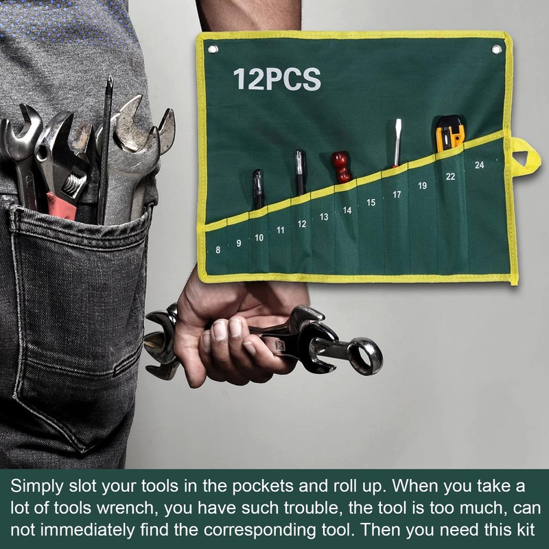 • Convenient Storage: With convenient pockets, you can easily slide your tools into place and roll up the tool roll for safekeeping. This design allows you to organize your spanners and hand tools efficiently, keeping them easily accessible whenever you need them.