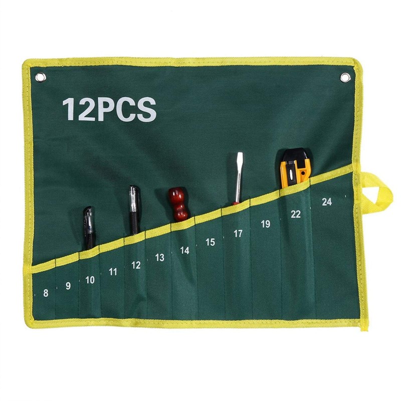 Yuecoom Multi-Purpose Tool Roll, Roll Up Tools Storage Bag Wrench Pliers Organizer Pouch Durable Roll Up Tool Bag 6/8/10/12//25 Pockets(12PCS)