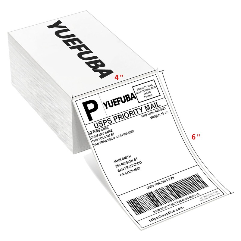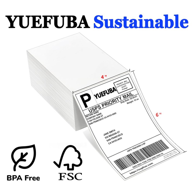Yuefuba 4x6 Thermal Shipping Labels Fanfold Pack of 500 Perforated and Strong Adhesive