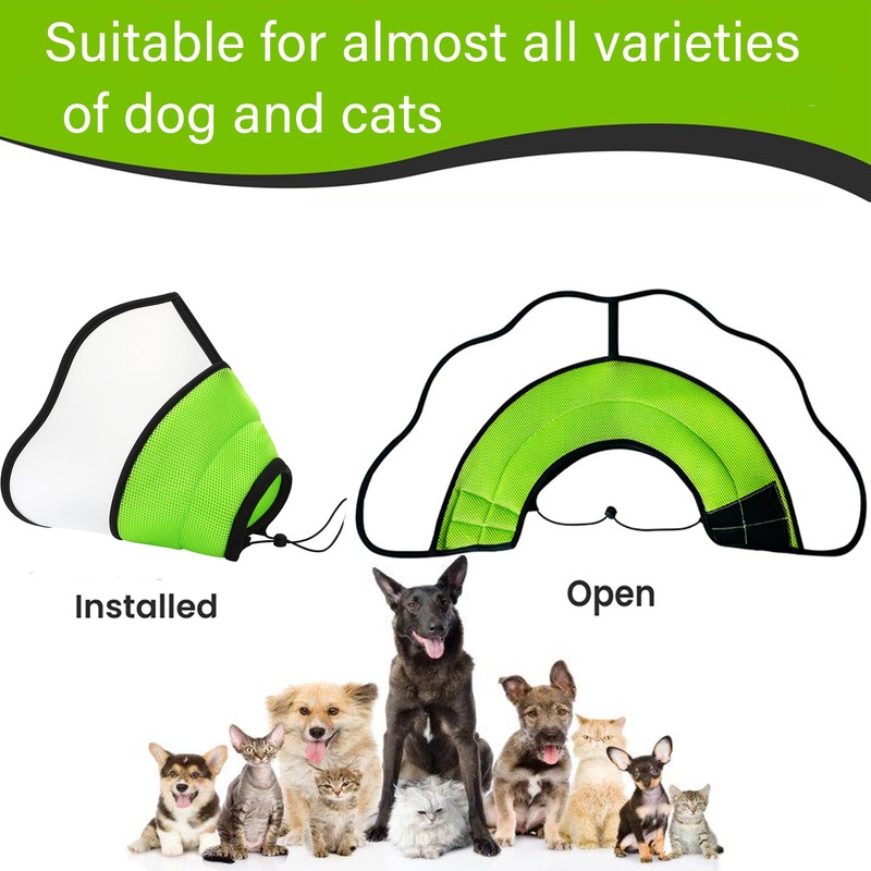 • Adjustable collar for dogs: This Elizabeth collar for dogs/cats has a practical magic tape closure that allows easy and quick attachment and removal. The elastic band can be attached to your dog's collar for extra security and prevents the collar from slipping or loosening.