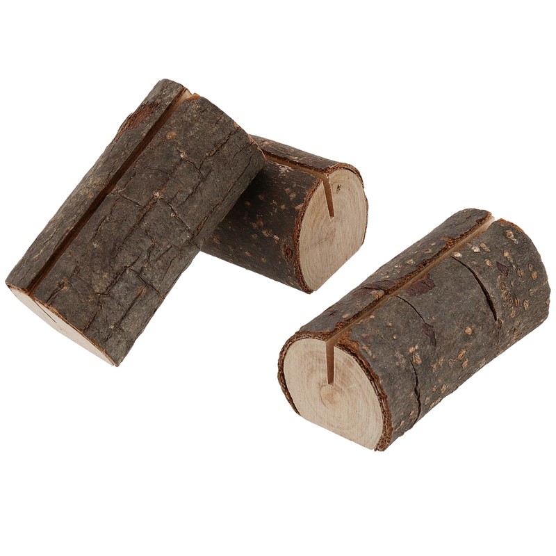 • NATURAL MATERIAL - Made of high quality wood with bark, these wooden table number holders have a unique wood grain and simple appearance that exudes the charm of nature. They are sturdy and durable, not easy to crack and deform, and can be used for a long time.