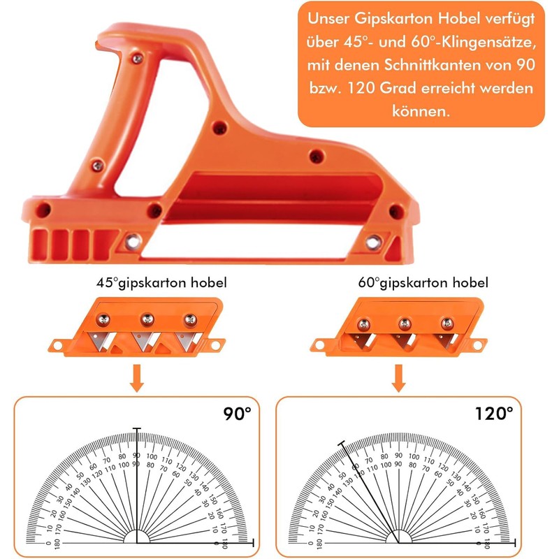 Yuentoen Edge planer for plasterboard, plasterboard edge cutter with 20 blades and screwdriver, plasterboard quick cutter, chamfer cutter, hand plane with 45° and 60° baldes