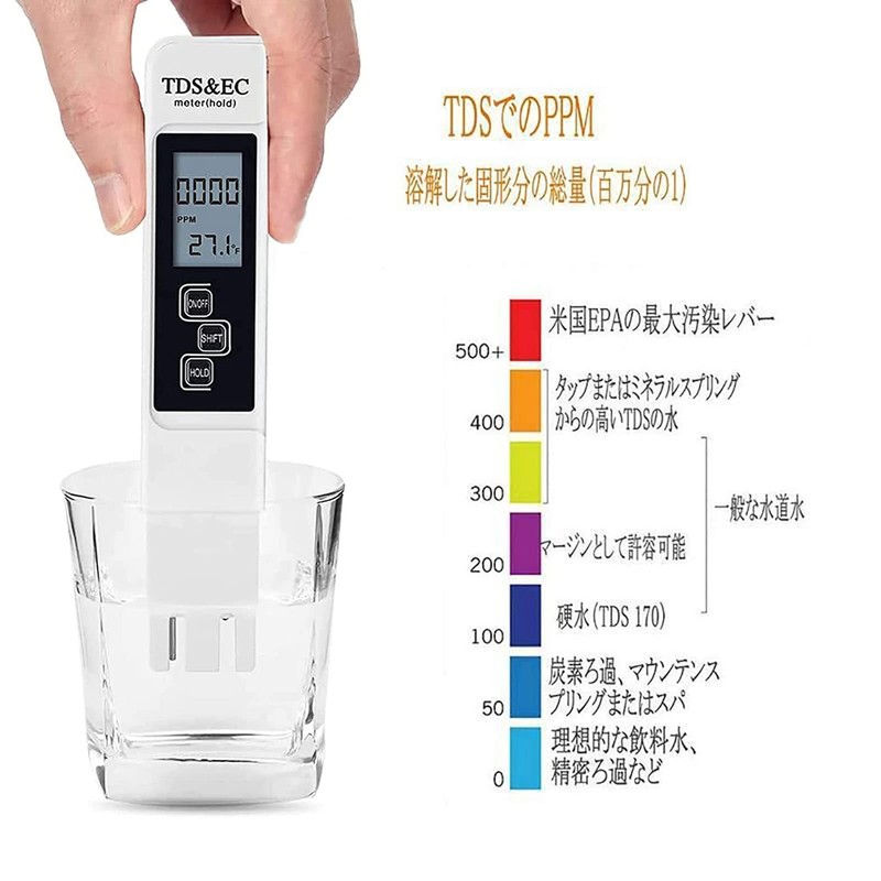 - ♘ 4 Mode Shift Press the SHIFT button to shift between 4 display modes: ppm & ℃, ppm & ℉, μs/cm & ℃, μs/cm & ℉. This is a must-have tool for home inspecting tap water, filtered water, bottled water, drinking water, etc