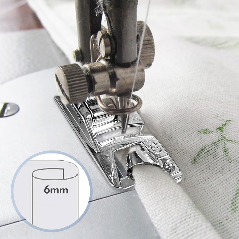 - Rolled hem foot: Specially designed to create beautiful rolled edges on delicate fabrics with ease, when using, please make sure the presser foot is fixed firmly and adjusted before use.