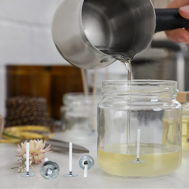 - Ideal para velas de parafina o cera de soja. Se puede utilizar con una variedad de recipientes de cera de velas, como: tarros de gelatina, tazas de té, caracolas, cuencos, tazas de café, macetas y así sucesivamente.