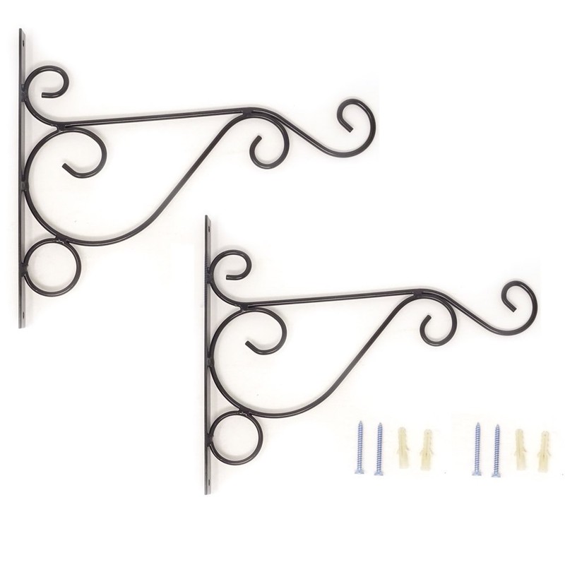 2 unidades de 10 pulgadas soporte de pared de metal gancho campanas de viento Lanterns Comedero de pájaros Planta Cesta Perchas con tornillos para estante estante valla