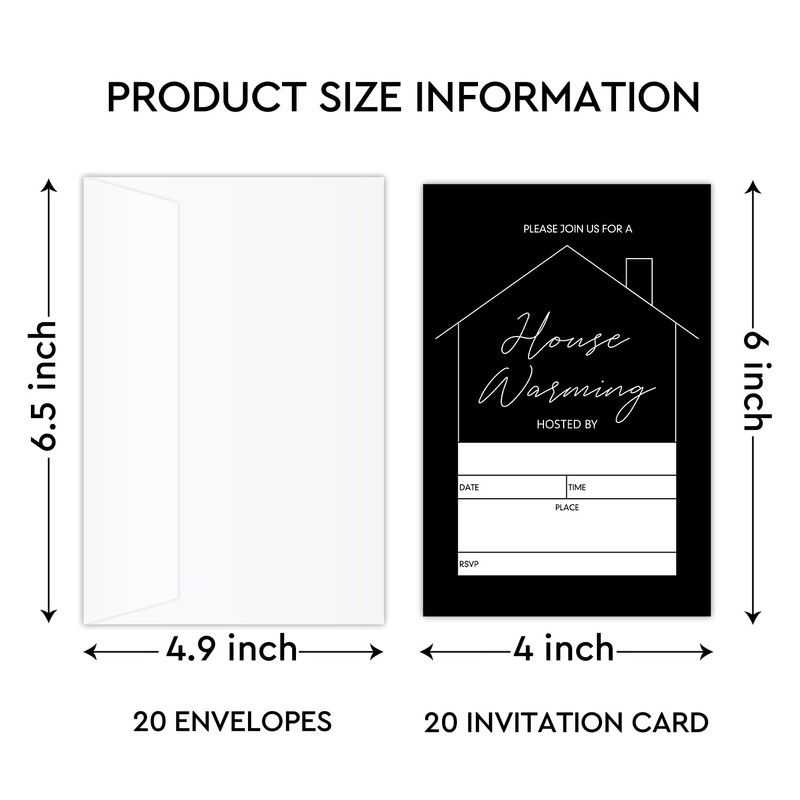 YUEXLL Black Minimalist Housewarming Invitations Housewarming Party Invitations with Envelopes Set of 20 Modern New Home Invitation Cards -02