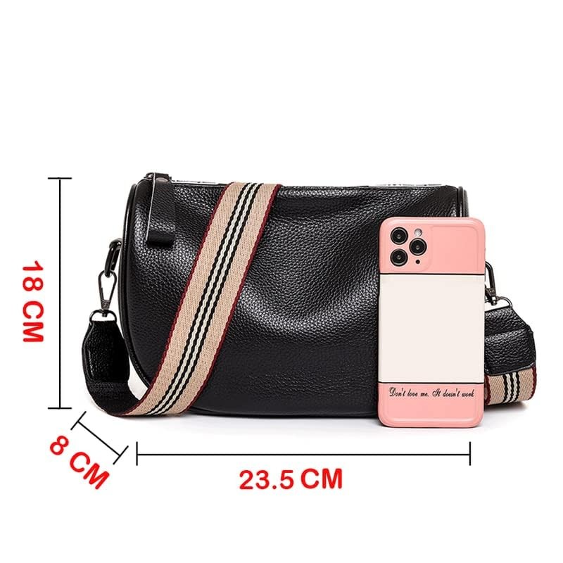 - Minimalism - This modern wide shoulder bag measures 23.5 x 8 x 18 cm and has enough space for your wallet, phone, glasses, keys and other small items.
