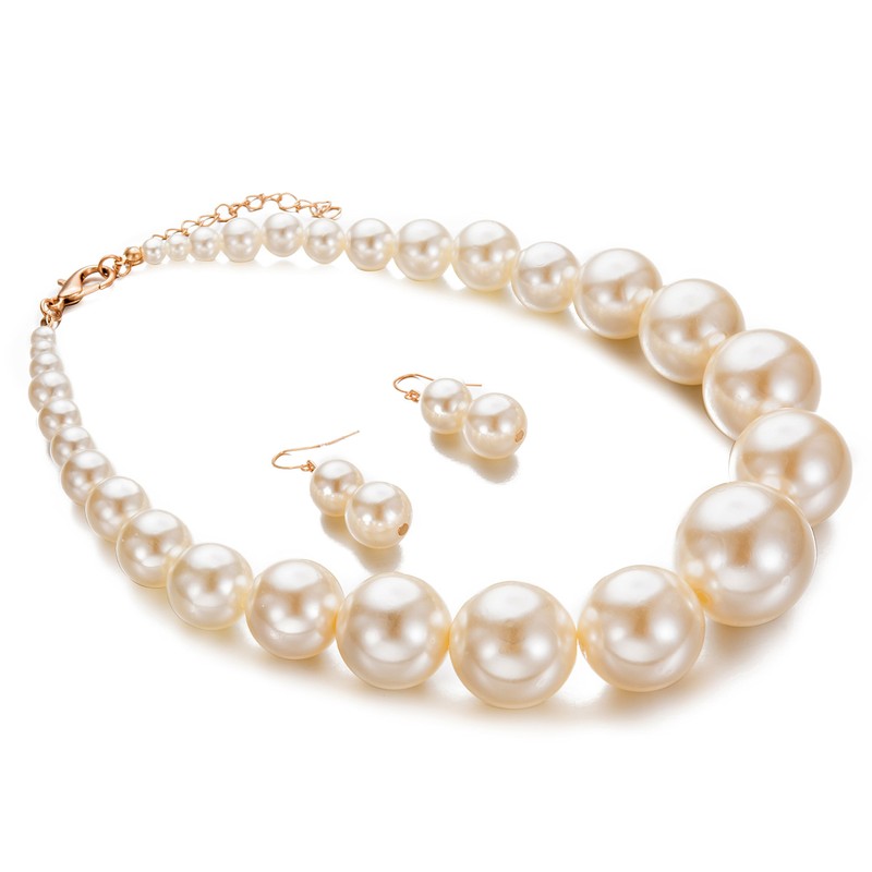 Yuhuan Womens Faux Big Pearl Choker Necklace and Earring Set Fashion Pearl Set